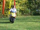 Juhuu, meine erste Fahrstunde im Garten. plötzlich sind da so viele Dinge, auf die ich aufpassen muss und von denen ich gar nicht wusste, dass sie in unserem Garten überhaupt sind .. wie eine Schaukel, eine Rose und eine Stange für Greifvögel. Komisch, so schnell konnte ich fast nicht ausweichen …